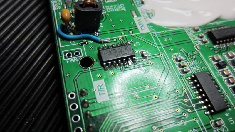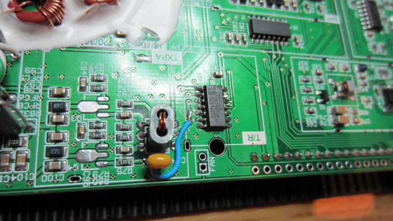 Der Übeltäter C2c. Er hat 9,8 Ohm Durchgang und hat damit die PTT5V-Leitung gegen Masse gezogen.
